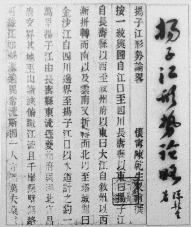 1897年冬,18岁的陈独秀发表文章《扬子江形势论略》,署名“怀宁陈乾生众甫”。全文6948字,是其第一篇公开发表的文章,也是他发表的第一篇军事政论文章。