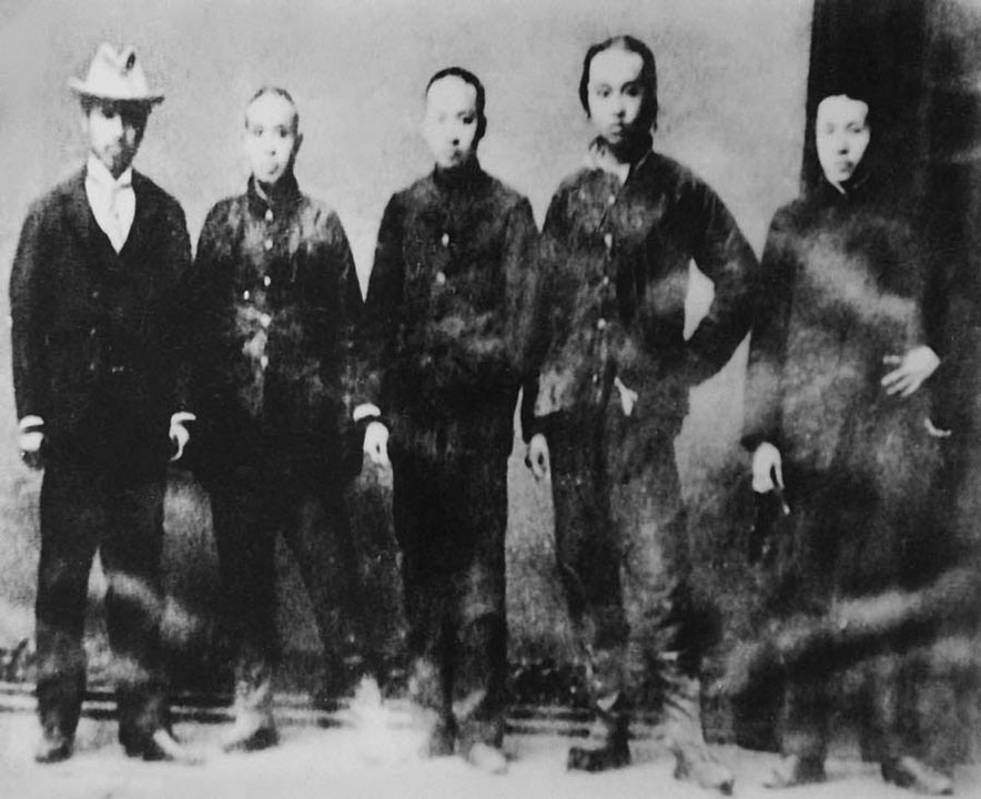 1903年2月,陈独秀(左一)与友人周筠轩、葛温仲、赵伯先、潘璇华等在日本东京。