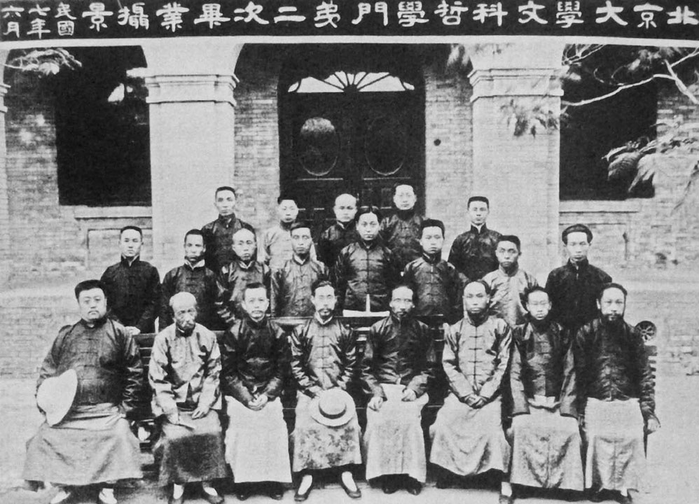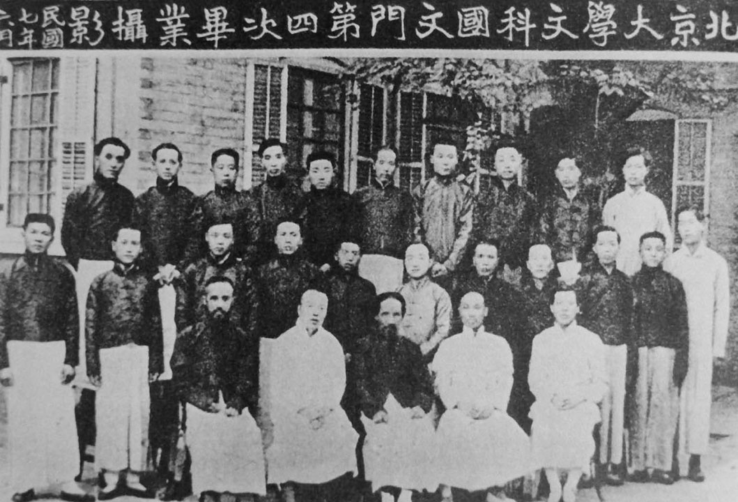 1918年6月,蔡元培(前排中)与陈独秀(前排右二)参加北京大学文科国文门毕业合影。
