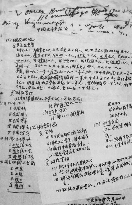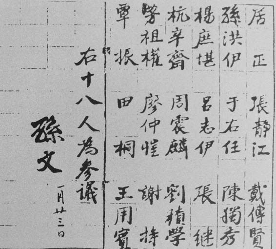 1923年1月23日,国民党筹备改组时,孙中山手书任命的有陈独秀等共产党人参加的国民党参议名单。