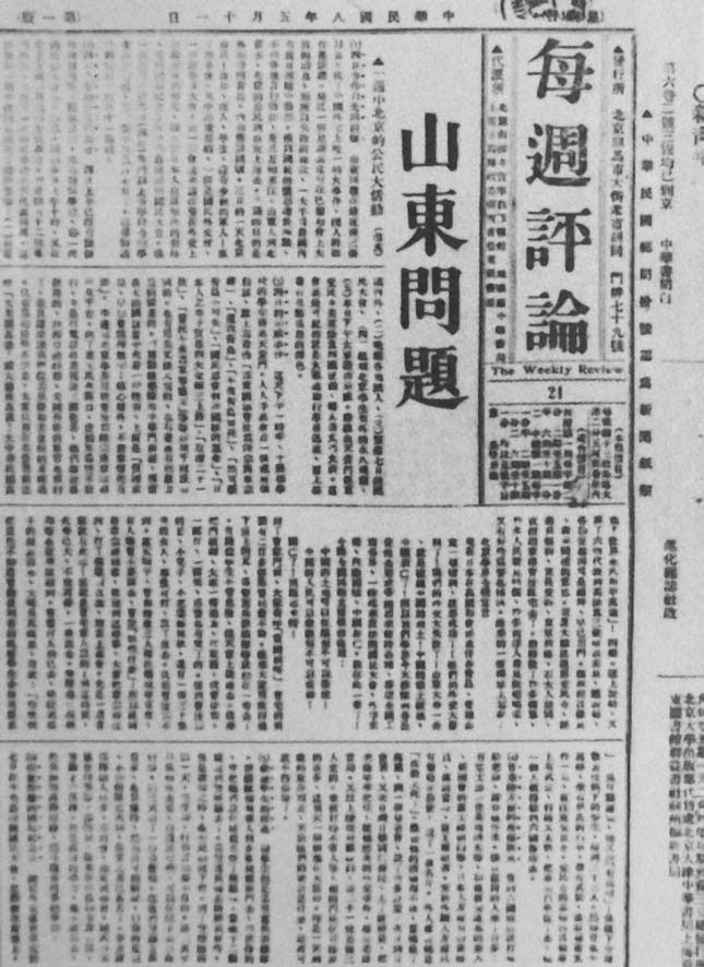 1918年,陈独秀、胡适和李大钊在北京大学创办《每周评论》。