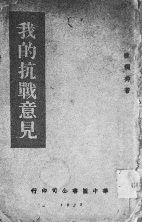 《我的抗战意见》,陈独秀著,华中图书公司印行,1938年版。