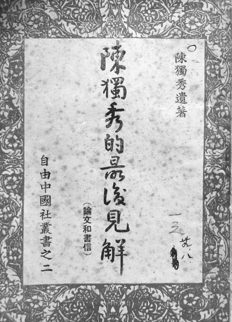 《陈独秀的最后见解》(论文和书信),陈独秀遗著,胡适作序,香港自由中国社出版,1949年6月版。