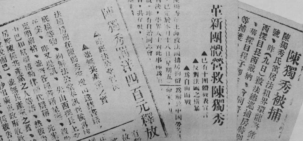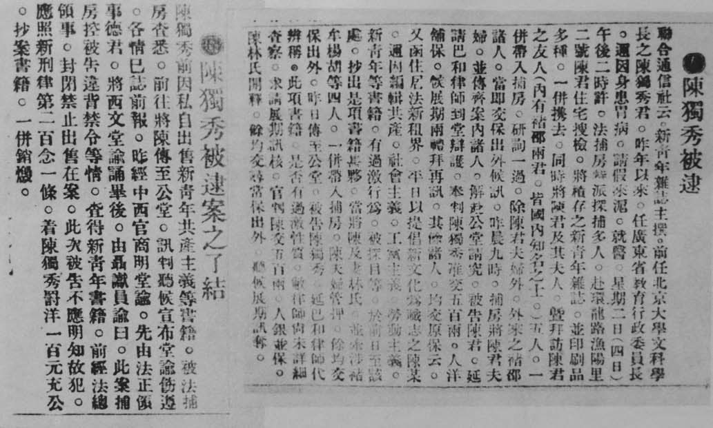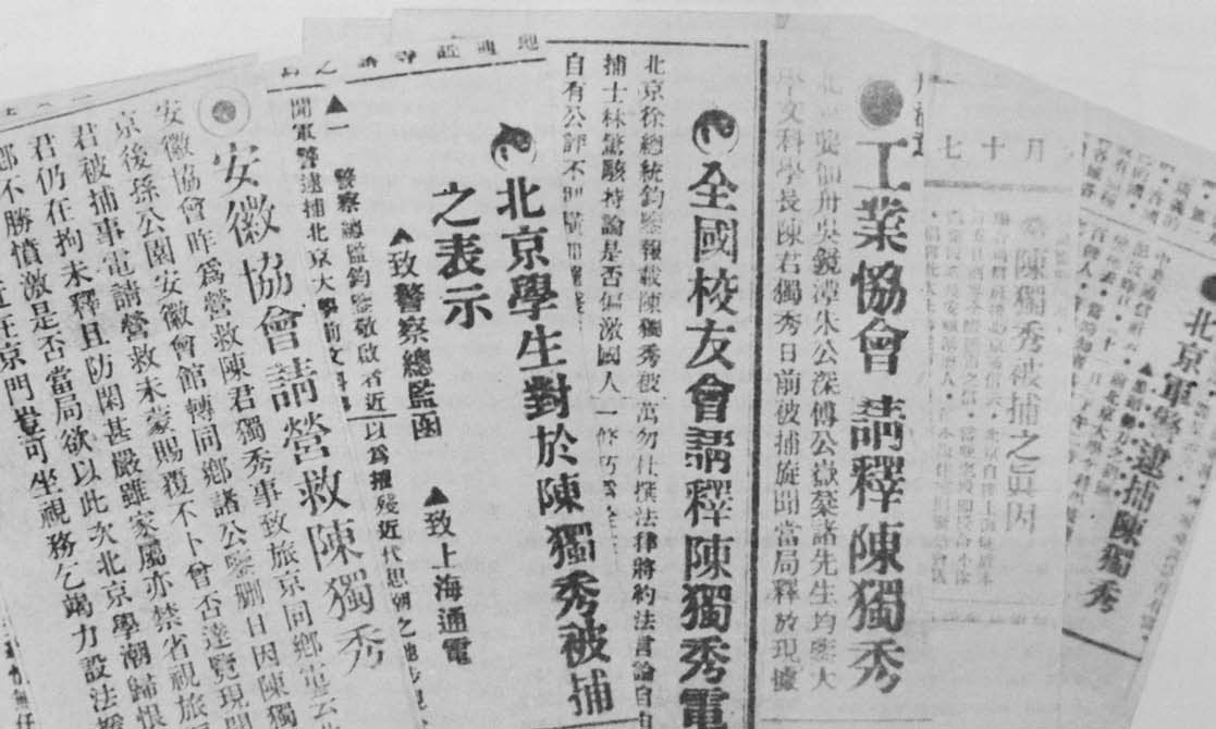 1921年,陈独秀被捕后,上海各报的报道。