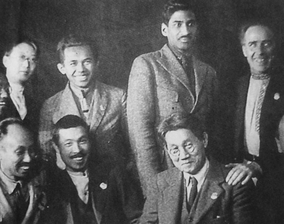 1922年底,陈独秀(前排左一)和瞿秋白(后排右四)等参加共产国际第四次代表大会。