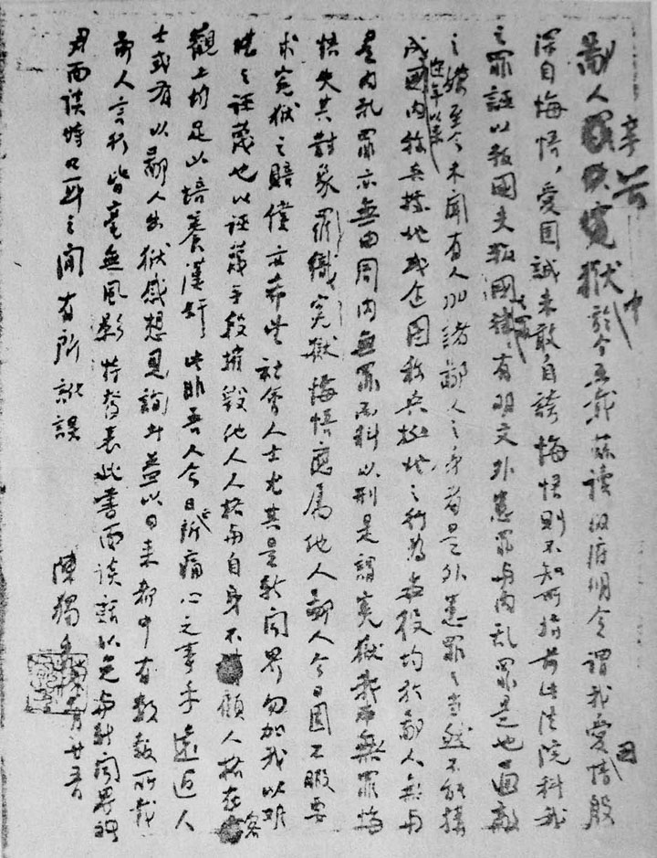 1937年7月,陈独秀在监狱写作《实庵自传》。