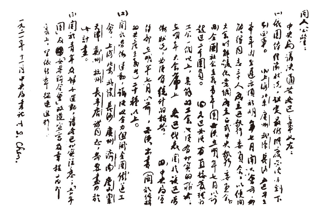 1922年,陈独秀签署的中共中央给共产国际的第一年度工作报告。