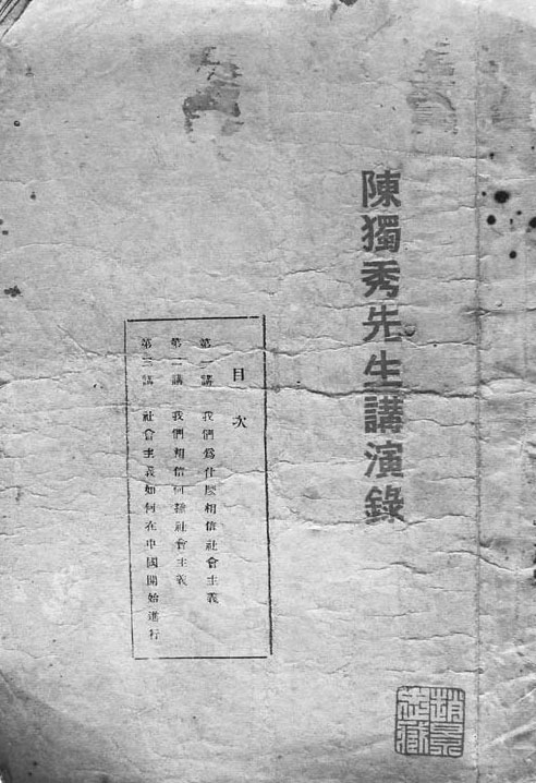 《陈独秀先生讲演录》,新青年社编辑,汉口长江书店发行,1924年4月初版,1927年2月第九版。